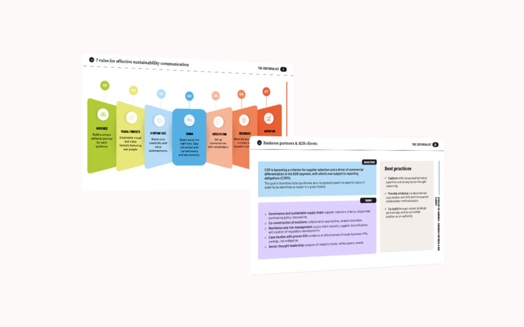 Sustainability communication is changing. Audience expectations are growing more complex, publics are fragmenting, and a reporting-led approach no longer delivers results. What drives performance now is the ability to build a coherent editorial journey — one tailored to each strategic audience.
