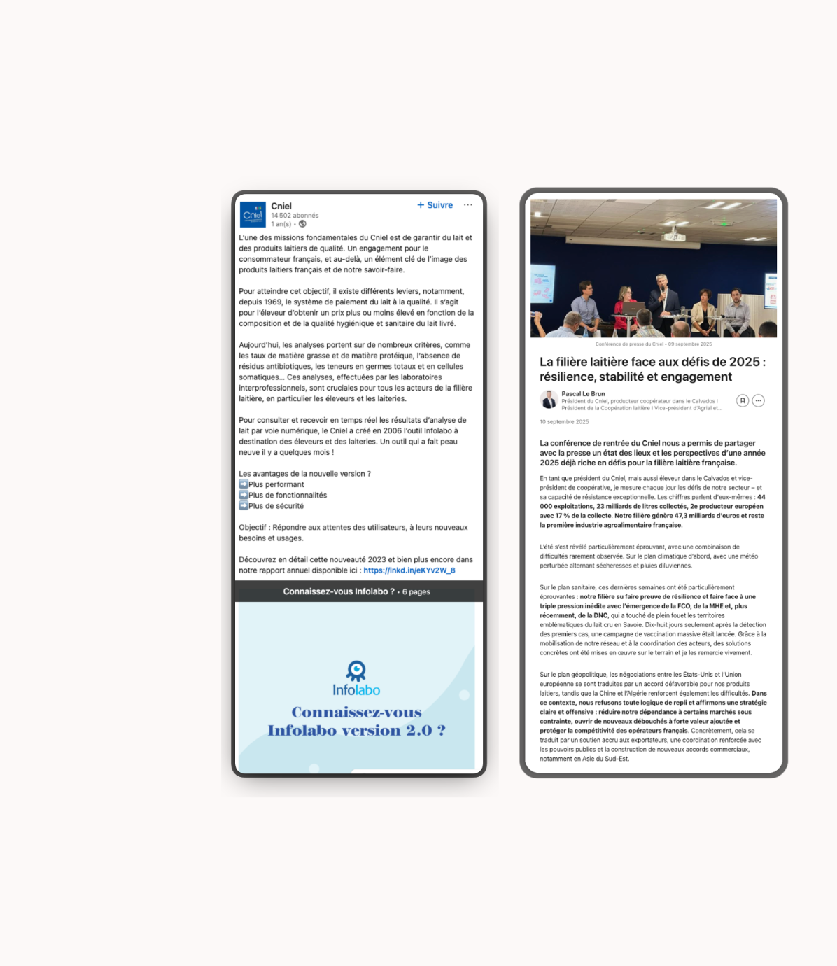 Institution historique de la filière laitière française, le Cniel (Centre national interprofessionnel de l’économie laitière) fédère les acteurs de la chaîne – éleveurs, transformateurs (privés & coopératives), distributeurs et restaurateurs – autour d’un objectif commun : défendre les intérêts du secteur et valoriser ses métiers.